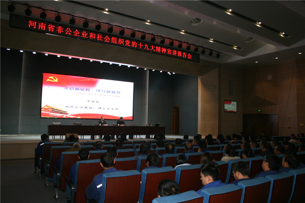 根據(jù)河南省委宣傳部、省委組織部安排部署,省非公企業(yè)和社會組織黨的十九大精神宣講報告會于12月11日下午在林州重機多功能廳舉行。省十九大精神宣講團成員、鄭州大學(xué)教授、博士生導(dǎo)師辛世俊作宣講報告,辛教授從八個方面對十九大報告深入淺出,通俗易懂闡述了報告精神實質(zhì)和深刻內(nèi)涵。安陽市委宣傳部、市委組織部,林州市委宣傳部有關(guān)領(lǐng)導(dǎo)參加并聆聽了宣講報告。公司黨委書記郭現(xiàn)生及中高層領(lǐng)導(dǎo),全體黨員及入黨積極分子,機關(guān)各部室管理人員及車間管理人員共300余人聽取宣講報告。會后,公司黨委書記、董事長郭現(xiàn)生接受了安陽電視臺的采訪。