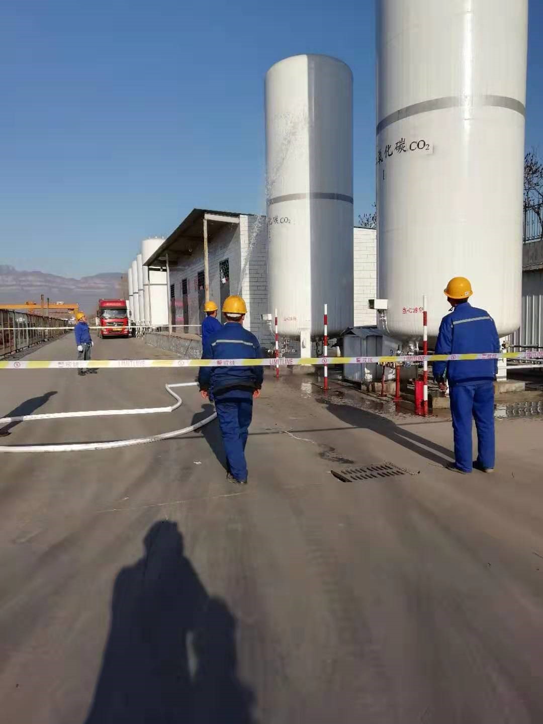 3月14日上午,在模擬現(xiàn)場(chǎng),公司制氧站值班人員發(fā)現(xiàn),二氧化碳容器罐頂溫度過(guò)高,容器隨時(shí)會(huì)發(fā)生異?,F(xiàn)象,立即報(bào)告安全生產(chǎn)部并通知了動(dòng)力設(shè)備部有關(guān)人員。安全生產(chǎn)部、動(dòng)力設(shè)備部在接到制氧站電話通知后,有關(guān)人員迅速趕到制氧站現(xiàn)場(chǎng),并在事故現(xiàn)場(chǎng)設(shè)立了警戒區(qū),維修人員用消防水帶對(duì)二氧化碳?jí)毫θ萜黜敳窟M(jìn)行水冷卻,隨著消防水的噴射,二氧化碳頂部溫度逐步降落,回到了規(guī)定的安全范圍,及時(shí)消除了安全隱患。